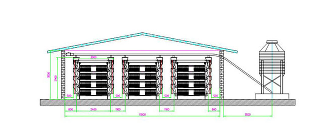 1. H-Type battery broiler chicken cage system: 186 sets in total. 2. Automatic feeding machine: 3 sets, Ladder-type, 1 set per row. 3. Belt manure removing system: 3 sets, one set per row. 4. Automatic egg collecting system: 3 sets in total, 1 set/row. 5. Automatic environmental controlling system: 1 set.Providing Customization Services: according to customer’s breeding quantity or chicken house size.